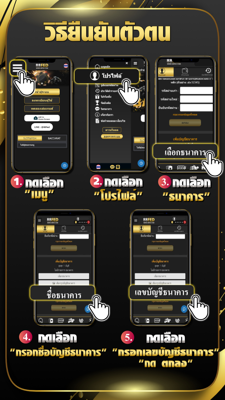 ใส่ข้อมูลบัญชีธนาคารหรือวอลเล็ท